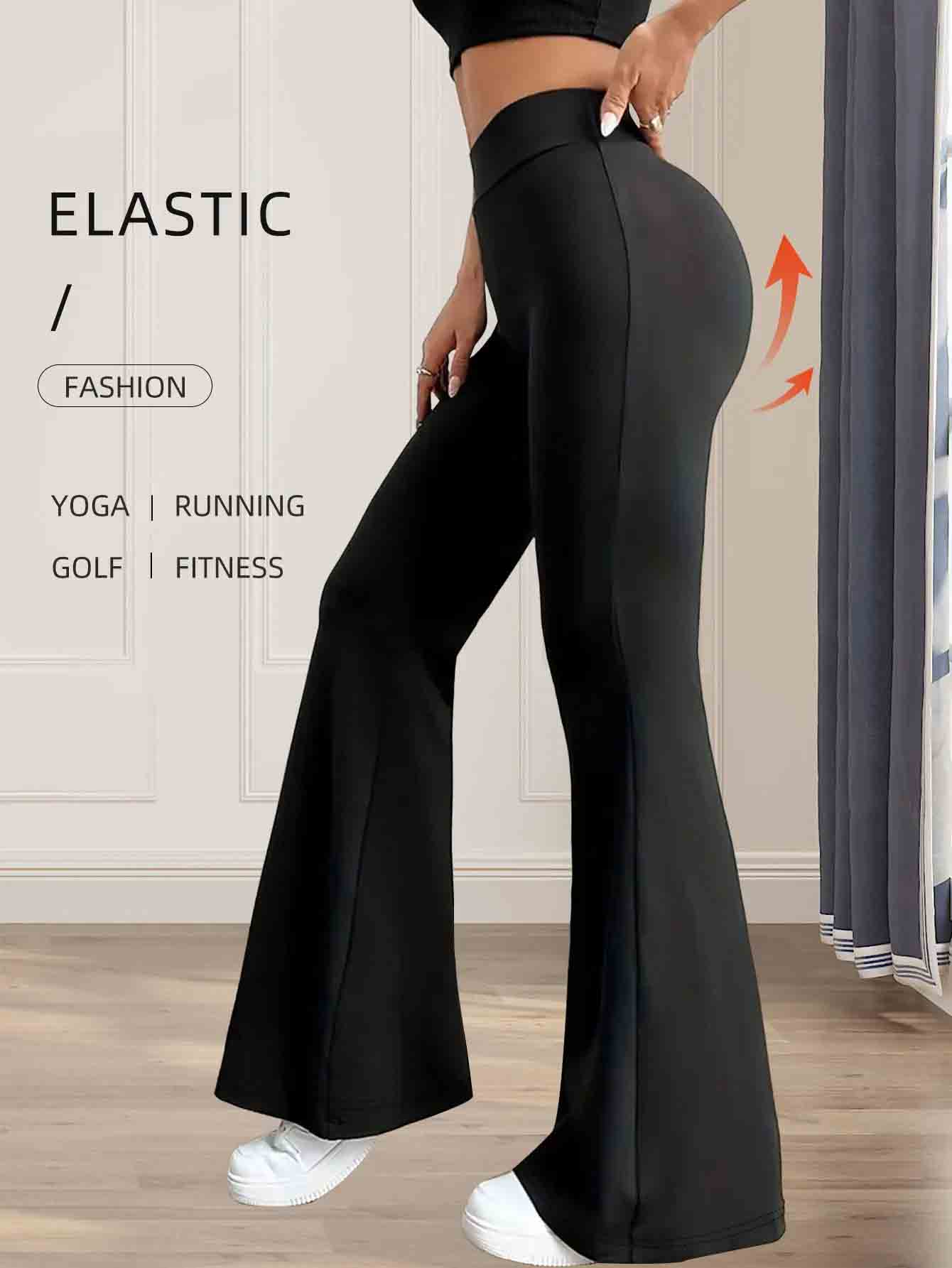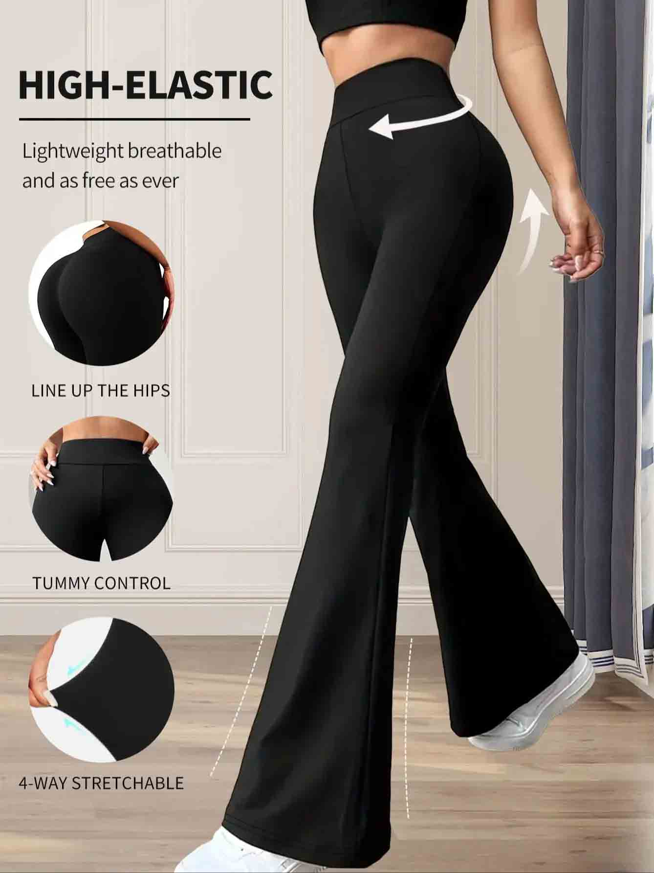 Women’s spring and summer high waisted tight fitting flared pants, slim leg long black pants, thin wide leg pants for slim women